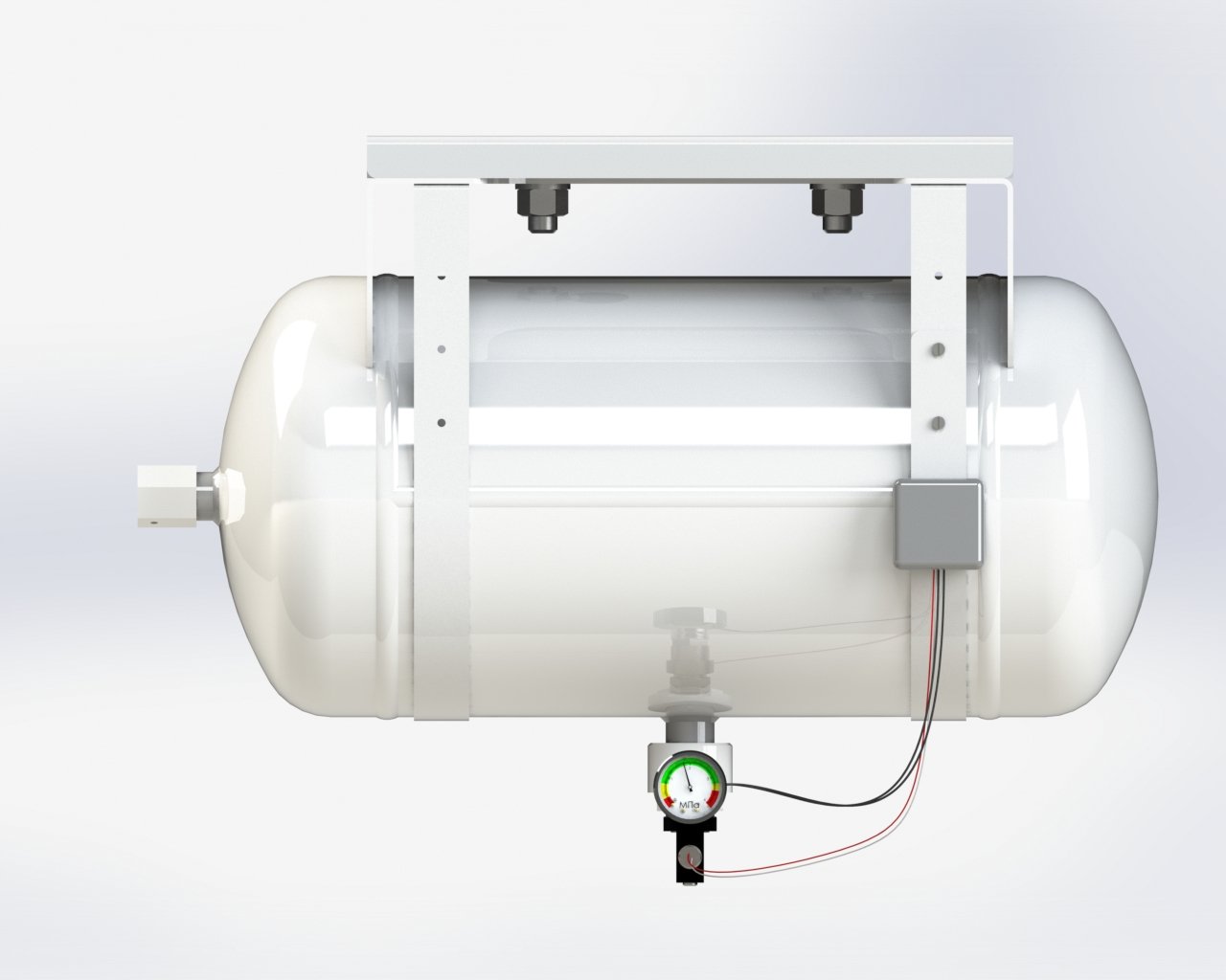 Модуль газового пожаротушения. Модуль газового пожаротушения с электроконтактным манометром; вместимость резервуара 20 л, диаметр условного прохода ЗПУ 18 мм, продолжительность выпуска 10 сек., максимальный защищаемый объём 40 куб.м; U-сраб.2.4 В, I-пуск.0.15 А, t-пуск.0.1 сек., R-пуск.цепи 2...16 Ом, I-провер.28 мА; IP40, t-раб.-10...+50°С, 555х320х415 мм