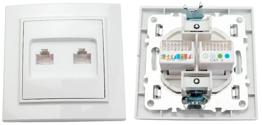 Розетка RJ-45+Phone СП. Розетка RJ-45 + RJ-11, установка в подрозетник (для скрытой проводки) белая, серия "Минск"