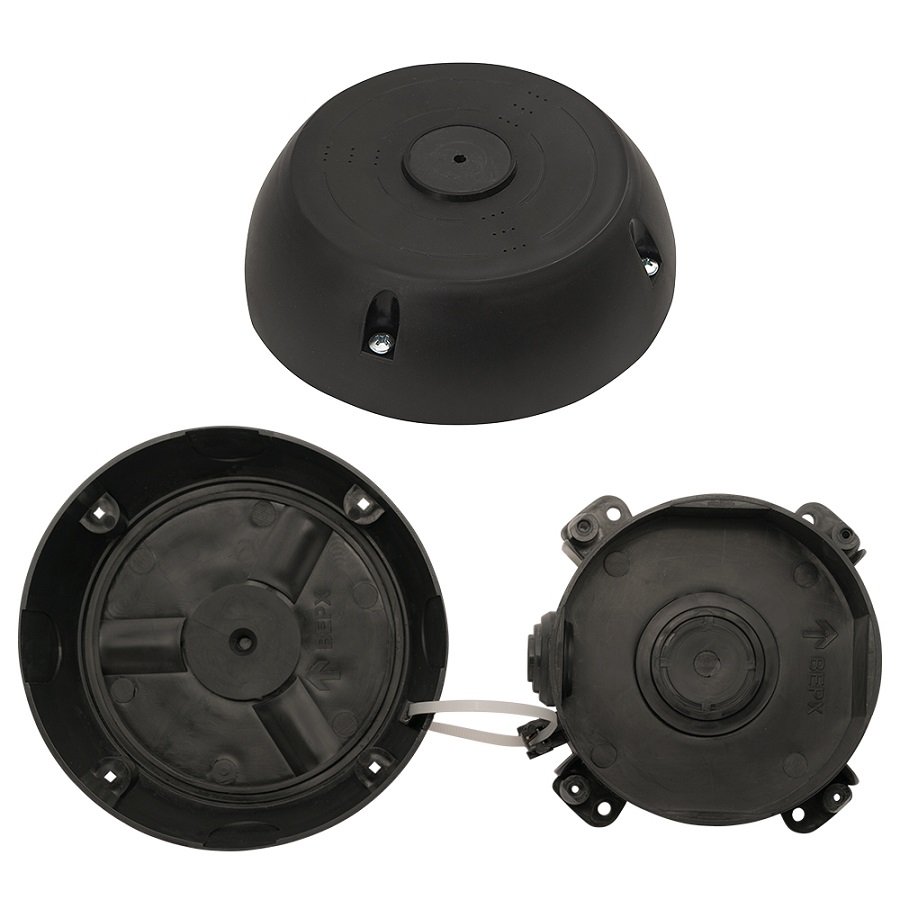 Монтажная коробка для крепления уличных видеокамер. Монтажная коробка предназначена для установки и подключения уличных видеокамер,пластиковый корпус, максимальная нагрузка 1кг, вес 0.13кг, цвет черный, -50 +60°С, IP 55, 121х41.5мм.