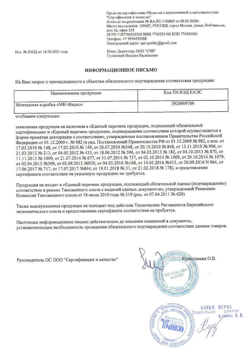 МК+Видео с гермовводом, черная