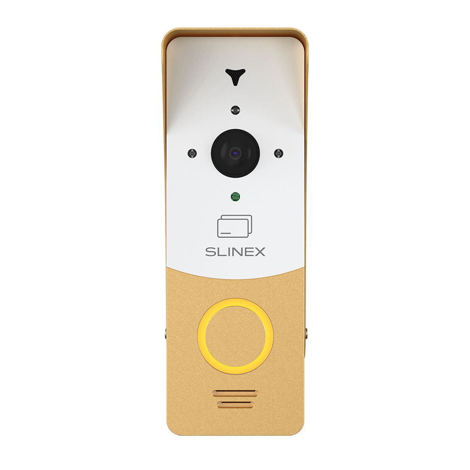 Вызывная панель цветная накладная. Вызывная видеопанель со встроенным контроллером и считывателем бесконтактных карт EM-Marin. Матрица 1/2,9” CMOS, разрешение AHD 1080p (2 Мп), AHD 720p (1 Мп) или CVBS (PAL), угол обзора: 115° по горизонтали, минимальная освещенность: 0,01 Люкс (ИК подсветка до 1,5 м). Кнопка переключения форматов камеры. Механический ИК фильтр. Подсветка кнопки. Количество идентификаторов: 248 шт. Выход Wiegand-26. Класс защищенности: IP65, температура эксплуатации: -40...+50 °С. Питание: +12 В (БП в комплекте). Размеры: 130×45×24 мм. Цвет - золото+белый
