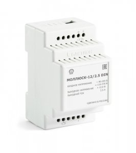 Краткое описание: Источник питания на DIN рейку; U-вх.90...265В, U-вых.12В, I-вых 2.5А, защита от перегрузки и КЗ, регулировка вых.напряжения; IP20, t-раб.-10...+40°C, 53х90х66 мм