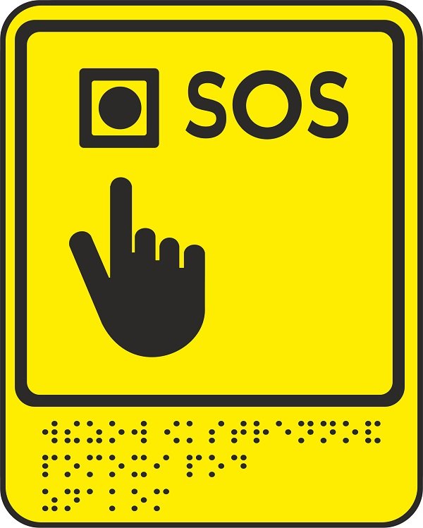 Табличка с пиктограммой. Информационно-тактильная табличка "Знак кнопка вызова экстренной помощи", рельефная, со шрифтом Брайля, пластик, 160х200х5 мм
