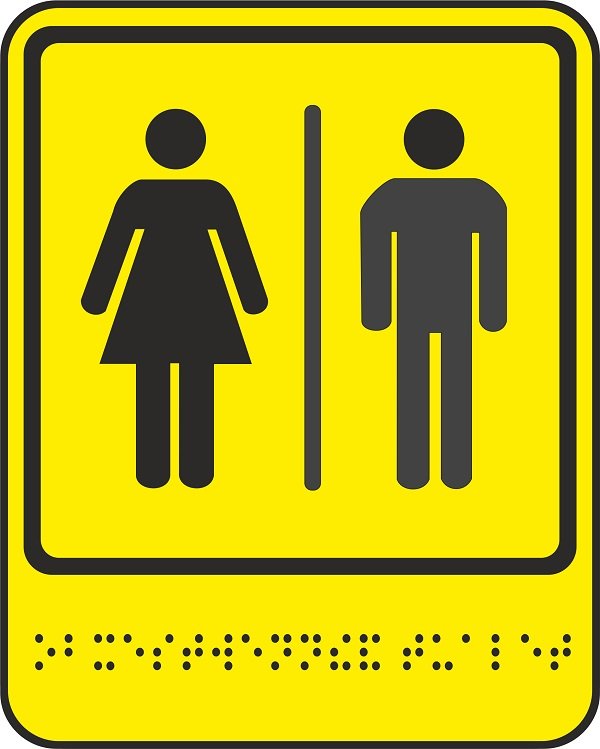 Табличка с пиктограммой. Информационно-тактильная табличка "Знак блок общественных туалетов", рельефная, со шрифтом Брайля, 160х200х5 мм