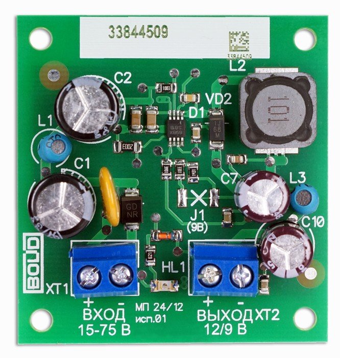 Модуль преобразователя. Модуль преобразователя напряжения для питания удаленных нагрузок. Входное напряжение 15…75В, выходное 12В или 9,3В, выходной ток – 0,5 А. От -40...+50°С