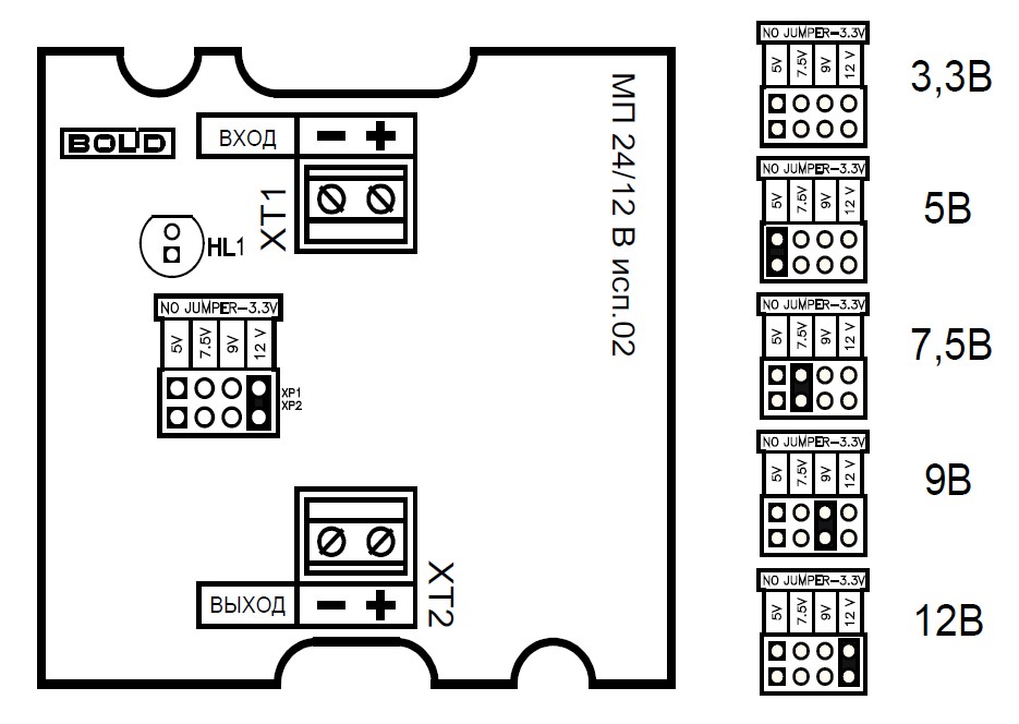 Модуль преобразователя. Модуль преобразователя напряжения; U-вх.10…30 В, U-вых.3.3, 5, 7.5, 9, 12 В (выбирается перемычками), I-вых.2 А (max); t-раб.-30...+50°С, 75х75х46 мм