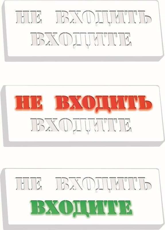 Светозвуковое табло. Подсвечивание непрерывным красным цветом предупреждающей надписи «НЕ ВХОДИТЬ» и мигающим зеленым цветом разрешающей надписи «ВХОДИТЕ». Для совместной работы с проводными кнопками MP-421D1 и радиокнопками MP-411D1, а также с пультом GC-4001DG в составе комплекта вызова «HostCall MP-912W2». Дополнительно к светозвуковому табло MP-740R2 можно подключить две сигнальные лампы MP-611W1 и одно такое же светозвуковое табло.