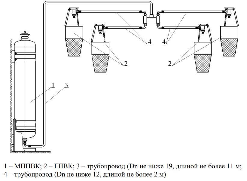 МППВК предназначен для локализации и тушения пожаров классов А, В в автоматическом или автономном режимах, как для тушения локальных очагов пожара, так и для пожаротушения всего помещения по площади и объему.
