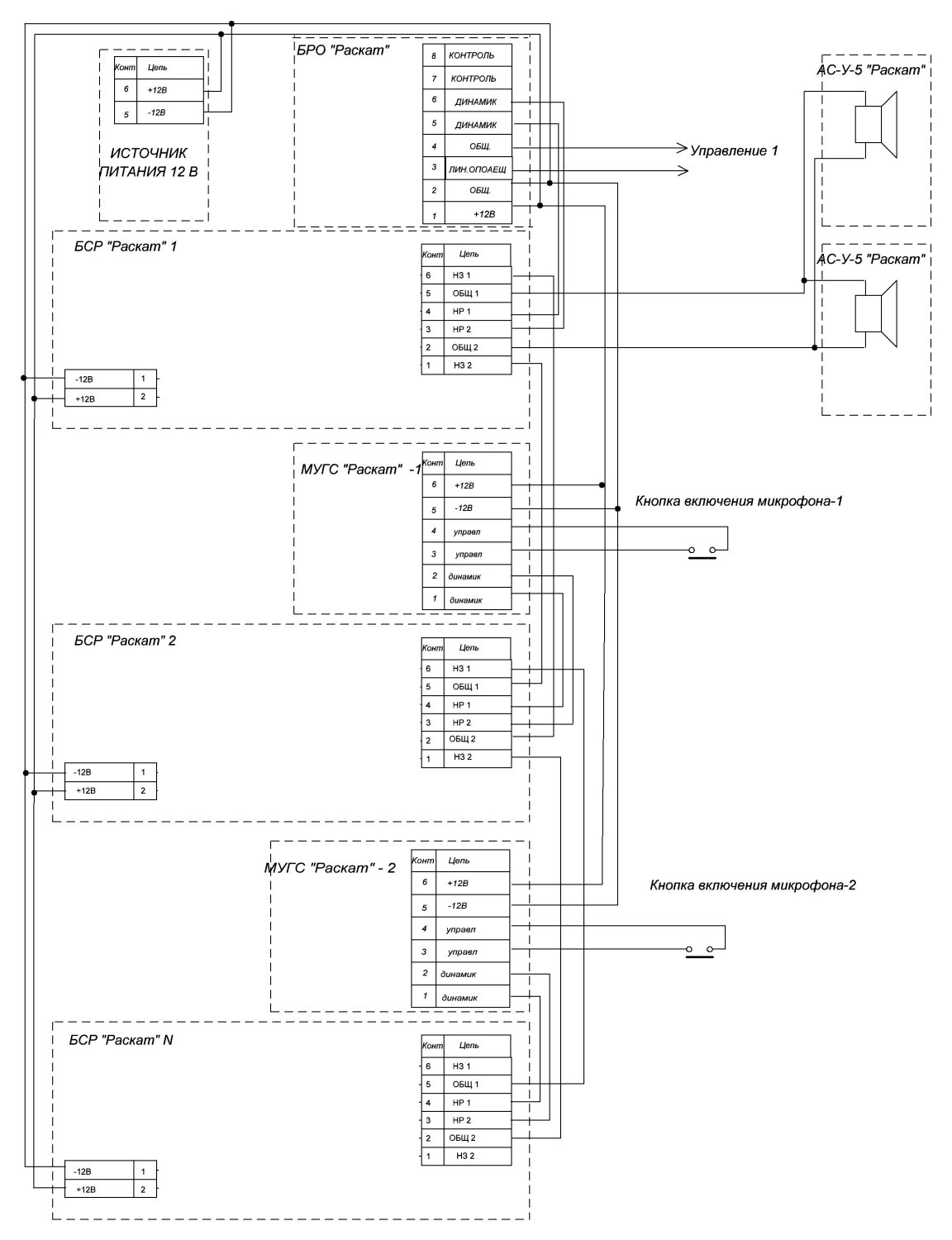 МУГС «РАСКАТ» состоит из электретного микрофона, предварительного усилителя и усилителя низкой частоты мощностью не менее 10 Вт.