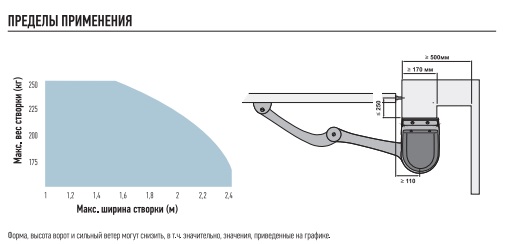 ВАЖНО:● Максимальное время непрерывного выполнения циклов: около 10 минут!● Нужно обратить внимание на пределы применения привода в документации! Необходимо соблюдать соотношение длины и веса створки. При длине створки 2,4 м - вес 160кг При длине створки 1,4 м - вес 250кг● Амперометрическая технология обнаружения препятствий;● Режим частичного открытия для прохода пешехода;● Плавный старт и остановка;● Резервное питание от аккумуляторной батареи PS124 (опция);● Компактное основание корпуса выполнено из литого алюминия;● Удобная разблокировка привода для управления воротами вручную;● Возможность реализации внешней разблокировки (опция).● HOPP — это серия электроприводов c шарнирной тягой для наружной установки, применяемая для автоматизации ворот со створками или распашных ворот, которые установлены на промышленных или жилых объектах. Электроприводы оснащены прочной тягой из алюминия с защитой от травматической ампутации и отлично подходят для интенсивного использования.● Основная часть системы автоматизации состоит из одного или двух электромеханических приводов (в зависимости от количества створок, подлежащих автоматизации). Каждый электропривод снабжен двигателем постоянного тока и шестереночным редуктором с прямыми зубьями. Электропривод HO7124 снабжен блоком управления, который отвечает за его работу. ● Конструкция блока управления предусматривает возможность подключения к различным устройствам системы Opera, системы Bluebus и системы питания от вырабатываемой солнцем энергии Solemyo.● Кроме всего прочего блок питания может иметь в своем составе буферную батарею (мод. PS124, дополнительная принадлежность), которая при отсутствии электроэнергии (отключение электропитания) гарантирует выполнение автоматическим механизмом некоторых операций.В случае прерывания подачи электропитания створку ворот можно двигать, разблокировав электропривод при помощи специального ключа (см. параграф «Разблокируйте и заблокируйте электропривод вручную»).