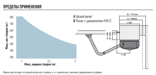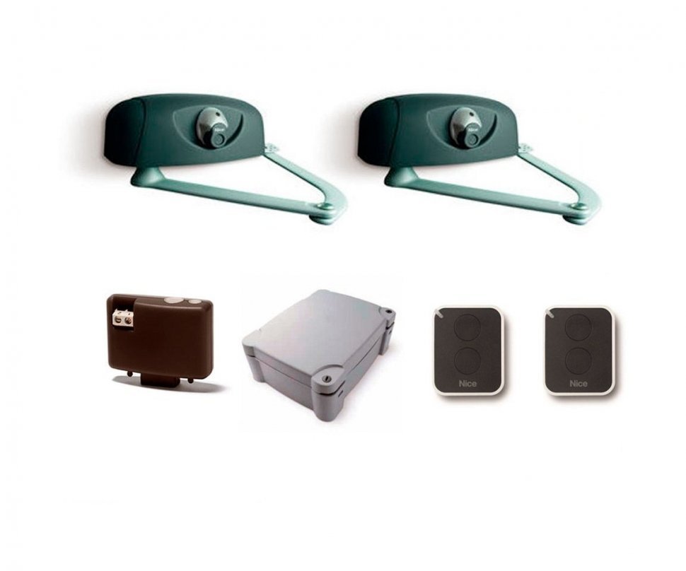 ВАЖНО:● Нужно обратить внимание на пределы применения привода в документации! Необходимо соблюдать соотношение длины и веса створки. При длине створки 3 м - вес 400кг При длине створки 2 м - вес 800кг● Возможность подключения электромеханического замка;● Режим частичного открытия для прохода пешехода;● Функция «Фототест» — каждый маневр совершается только после подтверждения работоспособности всех подключенных устройств безопасности;● Длительный срок службы: все механические части выполнены из металла;● Противоударный корпус без острых краев;● Эргономичный механизм разблокировки;● Возможность реализации внешней разблокировки (опция);● Прочный оцинкованный и окрашенный телескопический рычаг.Особенности блока NICE MC800● Режимы: автоматический, полуавтоматический, коллективного использования, частичного открывания створки.● Автоматическое закрывание ворот после заданной паузы — 8 уровней (5 ~ 180 с.)● Регулировка усилия (парциализация фаз), длительности пускового тока (до 3 с.), задержки открывания и закрывания (до 50 %), длительности непрерывной работы.● Распознавание и запоминание устройств, подключенных ко входам BlueBus и Stop.● Программирование функций при помощи dip-переключателей;● Разъем SM для подключения радиоприемников (SMXI, SMXIS, OXI);● Ручной, автоматический и полуавтоматический режимы работы;● Режим коллективного использования;● Регулируемые при помощи триммеров усилие и время паузы;● Упрощенное подключение дополнительных устройств;● Функция «Фототест» — каждый маневр совершается только после подтверждения работоспособности всех подключенных устройств безопасности;● Регулирование времени работы каждого двигателя;● Два входа для подключения элементов безопасности с раздельными функциями;● Предусмотрена возможность подключения электромеханического замка;● Режим частичного открытия для прохода пешехода.