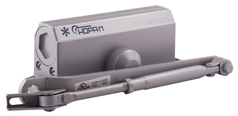 Универсальный по типу установки доводчик модели 3S с малым рычагом. Механизм устанавливается на двери весом 50–80 кг, сделанные из дерева, пластика, металла и других материалов. Рекомендуется для дверей, не требующих открывания на 180˚ (например, в тех случаях, когда открывание ограничено стеной). Для увеличения угла открывания двери до 180˚ корпус доводчика крепится на короб двери с противоположной стороны от петель. Подробно о выборе места установки можно прочитать в инструкции к изделию.