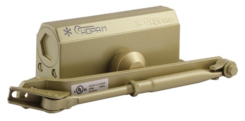 Универсальный по типу установки доводчик модели 3S с малым рычагом. Механизм устанавливается на двери весом 50–80 кг, сделанные из дерева, пластика, металла и других материалов. Рекомендуется для дверей, не требующих открывания на 180˚ (например, в тех случаях, когда открывание ограничено стеной). Для увеличения угла открывания двери до 180˚ корпус доводчика крепится на короб двери с противоположной стороны от петель. Подробно о выборе места установки можно прочитать в инструкции к изделию.