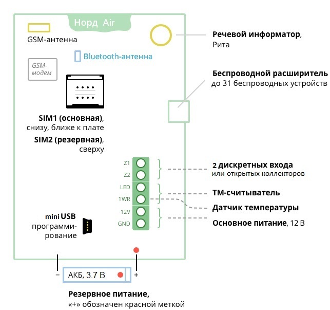 - поддерживает радиоканальные устройства Си-Норд;- беспроводные датчики температуры и протечки воды;- выносной блок питания;- встроенная GSM-антенна (выносная как опция)- 32 раздела:- компактный корпус.