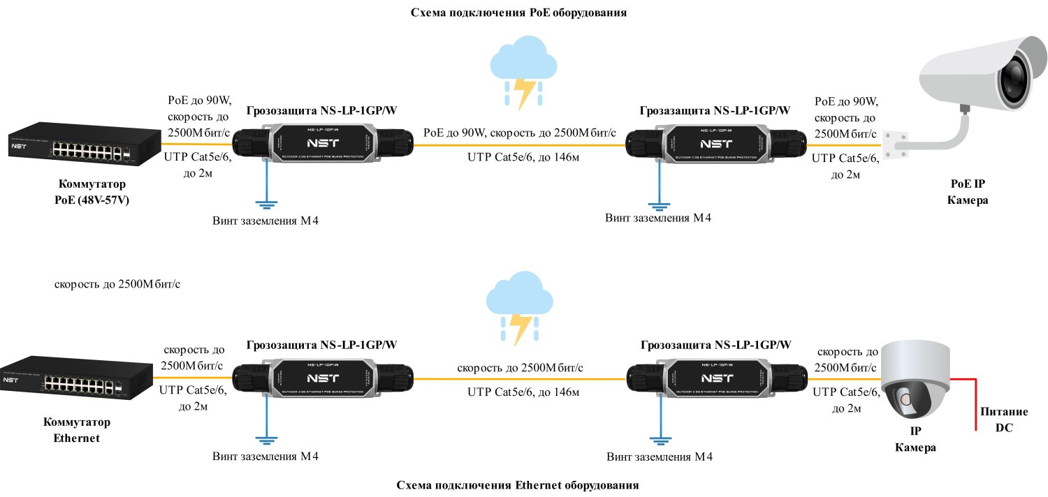 Устройство грозозащиты цепей Ethernet. Уличное устройство грозозащиты Ethernet сети 10/100/1000/2500 Мбит/с с защитой линий PoE (af/at/bt, методы A + B, контакты 1/2,3/6,4/5,7/8). Двухступенчатая защита. Максимальное длительное рабочее напряжение (Uс) DC 60В. Номинальный ток разряда (8/20 мкс,) 5kA. Суммарный ток разряда (8/20 мкс,) 10kA. Время отклика 1нс; вход 1хRJ-45, выход 1хRJ-45, уличное исполнение, класс защиты IP67; 160x43x43 мм.; -50…+85°С.