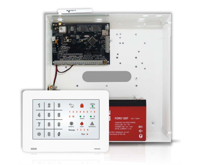 Прибор приемно-контрольный охранно-пожарный. Комплект охранно-пожарной сигнализации в составе: GSM-GPRS передатчик NV 8804, блок питания NV 7201, ЖК клавиатура NV 8524, антенна NV 1-SMA, металлический корпус NV 2002 290х290х90 мм под 2 АКБ 12 В/7 Ач. Поддержка облачного мобильного приложения NV HOME.