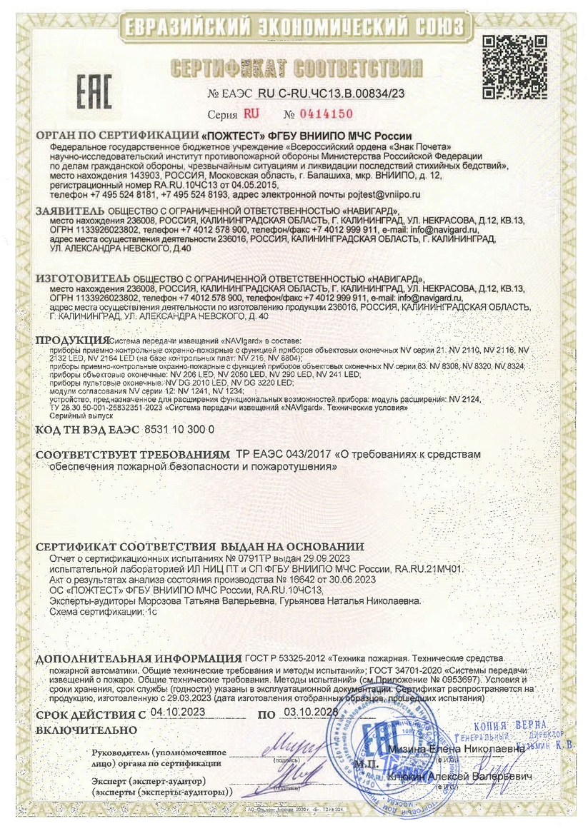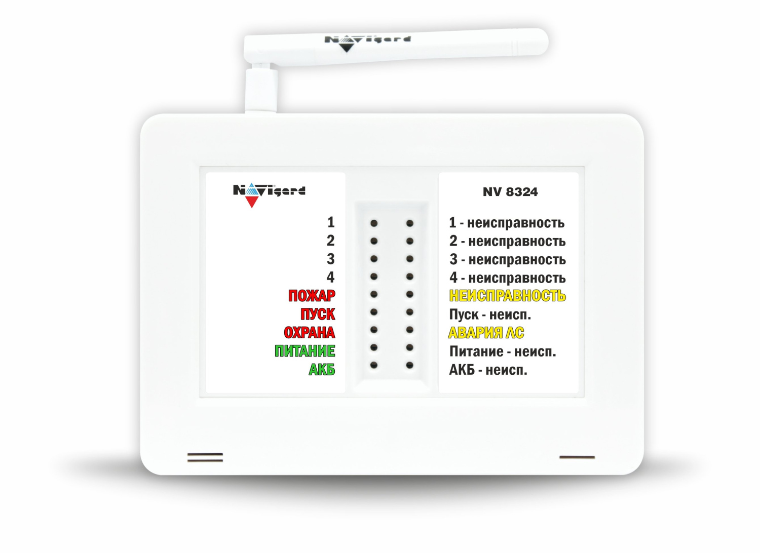 Прибор приемно-контрольный охранно-пожарный. Прибор приемно-контрольный охранный с GSM коммуникатором, индикация соответствует требованиям ТР ЕАЭС 043/2017, ГОСТ 34701-2020 2 SIM карты, 4(8) ШС с поддержкой 2-х проводных ИП, 4 выхода "ОК" I-коммут. ≤0,2 А, вход "Т" контрольных функций, до 3-х датчиков температуры NV TEMP, вход ТМ(Wiegand), miniUSB, U-пит.9…15 В, I-потр.100 мА, встроенный АКБ 1300мАч, SMA антенна, IP30, t-раб. 0...+40°C, габ.размеры 145х105х40 мм. Поддержка облачного мобильного приложения NV HOME. Комплектация: передатчик NV 8324, антенна NV 1-SMA, блок питания NV 7227 12В/1,5А