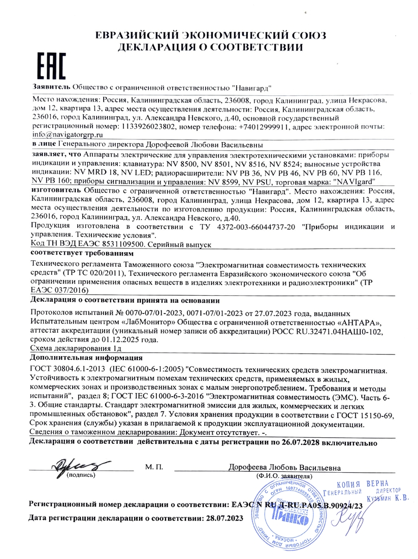 Блок индикации и управления для NV DG 2010. Блок индикации и управления для приемника NV DG 2010, U-пит. 9..15 В, I-потр. 0.1 А, t-раб. -25..+55°C, габ.размеры 143х105х35 мм