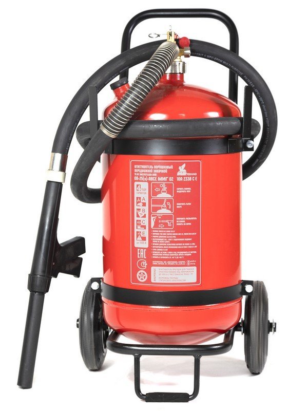 Огнетушитель порошковый закачной. Передвижной компактный порошковый огнетушитель с повышенной огнетушащей способностью закаченный осушённым азотом; ранг огнетушителя 10А,233В,С,Е, площадь тушения 46.04 кв.м., марка порошка «Вексон-АВС 25», вес огнетушащего порошка 25 кг, объем баллона 32 литра, длина струи 6 м, время подачи огнетушащего вещества 20 секунд; диаметр баллона 330 мм; t-раб.-40...+50°С. Вес огнетушителя: 50 кг.