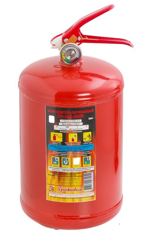Огнетушители порошковые закачные ОП-3 (з) с массой огнетушащего вещества 3кг предназначены (в зависимости от вида заряженного порошка) для ликвидации пожаров твердых веществ, в основном органического происхождения (класс А); пожаров горючих жидкостей или плавящихся твердых веществ (класс В); пожаров газообразных веществ (класс С), а также пожаров электрооборудования, находящегося под напряжением не более 1000 В (пожар класса Е), при эксплуатации в условиях умеренного климата У, категории 2, тип атмосферы II по ГОСТ 15150.Огнетушители не предназначены для тушения загораний щелочных и щелочноземельных металлов и других материалов, горение которых может происходить без доступа воздуха.Огнетушители являются изделиями многоразового пользования.