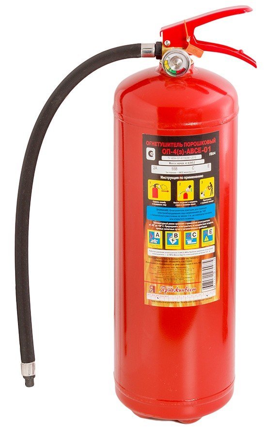 Огнетушители порошковые закачные ОП-4 (з) с массой огнетушащего вещества 4кг предназначены (в зависимости от вида заряженного порошка) для ликвидации пожаров твердых веществ, в основном органического происхождения (класс А); пожаров горючих жидкостей или плавящихся твердых веществ (класс В); пожаров газообразных веществ (класс С), а также пожаров электрооборудования, находящегося под напряжением не более 1000 В (пожар класса Е), при эксплуатации в условиях умеренного климата У, категории 2, тип атмосферы II по ГОСТ 15150.Огнетушители не предназначены для тушения загораний щелочных и щелочноземельных металлов и других материалов, горение которых может происходить без доступа воздуха.Огнетушители являются изделиями многоразового пользования.