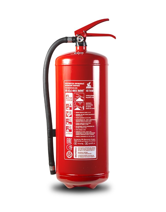 Огнетушитель предназначен для тушения пожаров классов:А – горение твердых веществ,В – горение жидких веществ,С – горение газообразных веществ,Е – горение электрооборудования, находящегося под высоким напряжением.