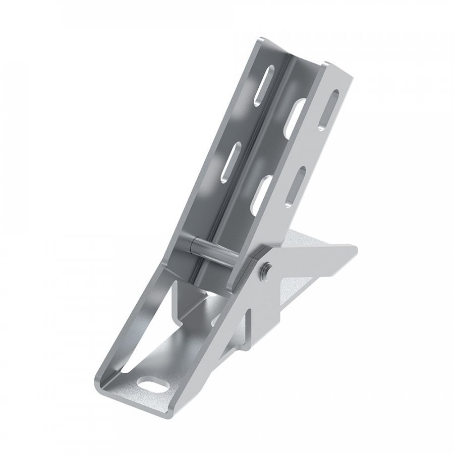 STRUT монтажные элементы в исполнении HDZ - это изделия с защитным покрытием горячий цинк (по ГОСТ 9.307), которые предназначены для создания инженерных систем как внутри помещений, так и на открытом воздухе. Используется на наклонных строительных конструкциях. Монтаж осуществляется к любой базовой поверхности. Опора позволяет проводить выверенный монтаж, когда необходима точная регулировка с последующей фиксацией углового положения.