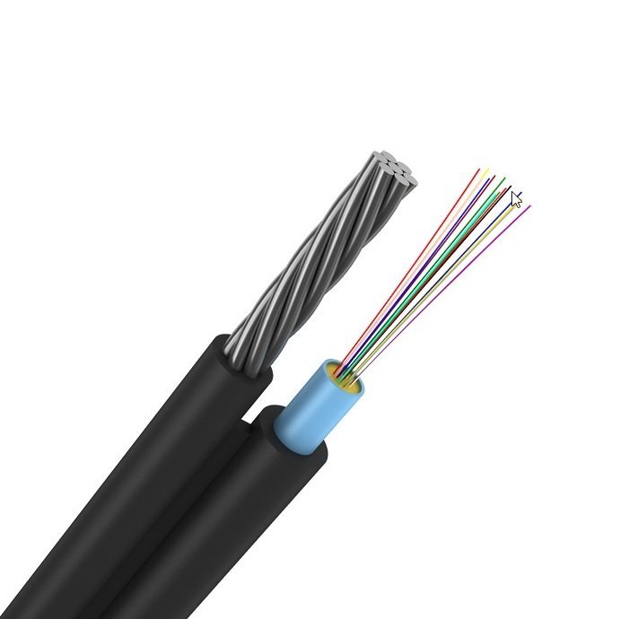Оптоволоконный кабель. Кабель волоконно-оптический одномодовый с тросом, 4 волокна, для подвески на опорах, самонесущий с вынесенным силовым элементом, растягивающее усилие 4 КН, -60°С... +70°С, черный.