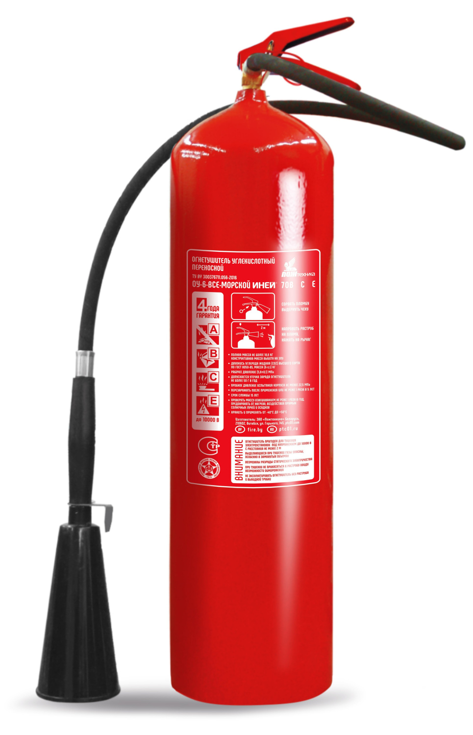 Углекислотные огнетушители (ОУ) «ИНЕЙ» применяются для тушения пожаров классов В, С, Е и наиболее эффективны для тушения электроустановок, находящихся под напряжением, поскольку практически не наносят ущерб защищаемому имуществу, так как углекислота, находящаяся в качестве заряда внутри углекислотного огнетушителя в сжиженном виде, превращается после выброса из огнетушителя в «сухой газ», который не загрязняет защищаемое имущество.