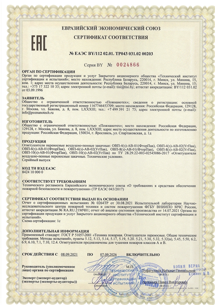 Воздушно-пенные огнетушители МИГ с фторсодержащим зарядом (ОВП МИГ ФторПАВ) обладают исключительной способностью тушения горючих жидкостей, применяются на морских судах. Основная область применения огнетушителей ОВП МИГ ФторПАВ химическая и нефтехимическая промышленность, аэродромы, а также везде, где необходимо за короткое время потушить большие площади с розливом нефти или нефтепродуктов или успеть предотвратить возгорание горючих жидкостей. Рекомендованы для применения на морских судах и портах.