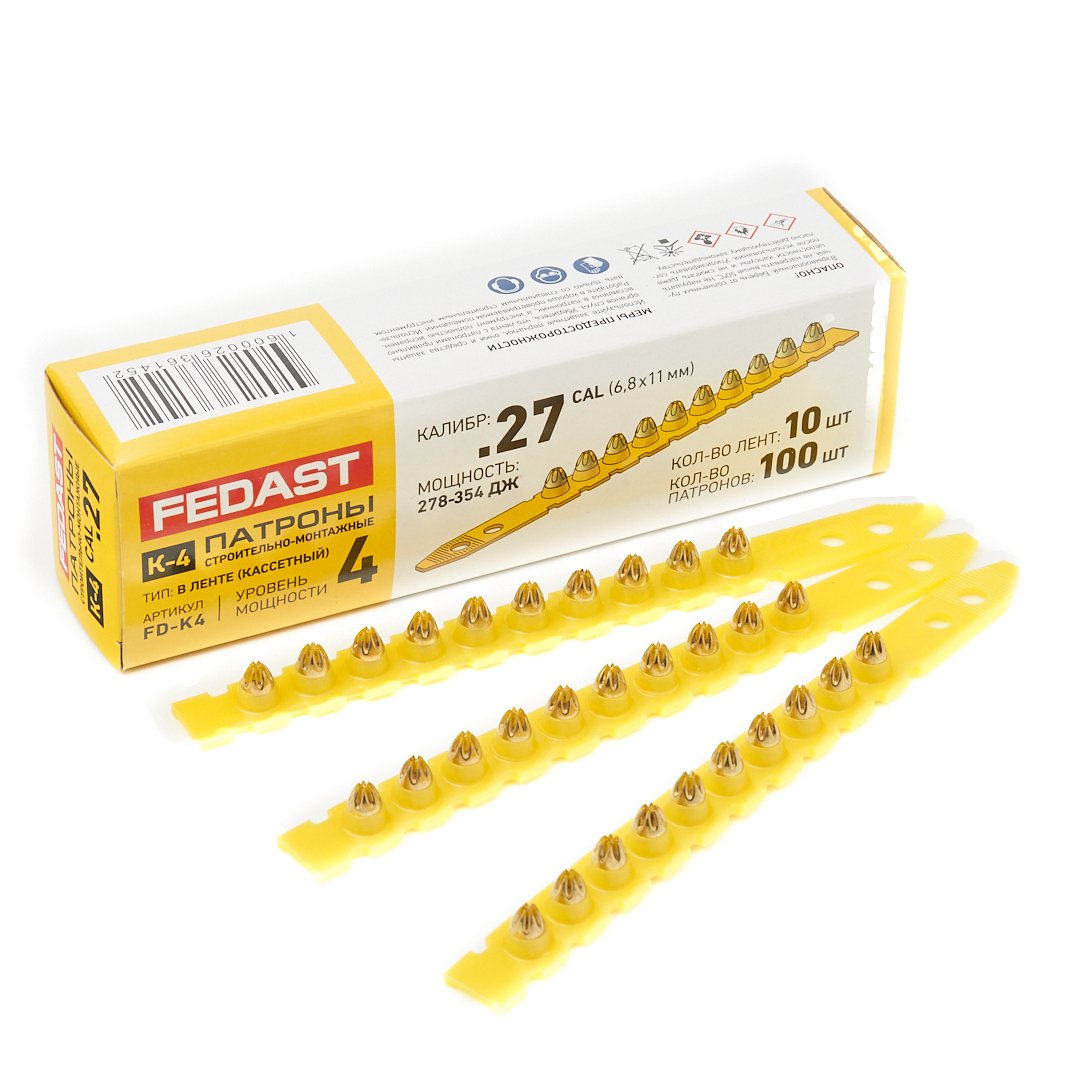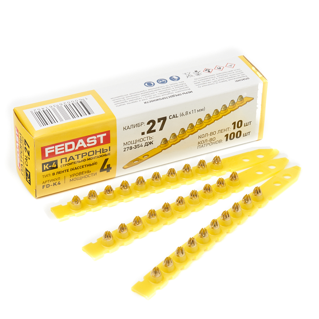 Патрон монтажный в кассете К-4 (кал. 6,8х11 мм, желт., 100 шт) FEDAST (FD-K4)