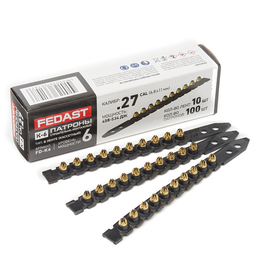 Патрон монтажный в кассете К-6 (кал. 6,8х11 мм, черн., 100 шт) FEDAST (FD-K6)
