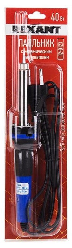 Паяльник с керамическим нагревателем, долговечное жало 40 Вт REXANT предназначен для ручного монтажа радиоэлементов. Его можно использовать как в домашних условиях, так и в профессиональных лабораториях.Паяльник выполнен с керамическим нагревательным элементом, поэтому нагревается быстрее, чем нихромовый и при бережном отношении прослужит много лет. Долговечное жало паяльника состоит из медного сердечника, покрытого слоем электролитически осажденного железа. Рабочая часть жала электрохимически покрыта слоем олова (что обеспечивает облуживаемость), а остальная поверхность — хромирована.Такие жала могут при соблюдении ряда предосторожностей работать длительное время без разрушения.