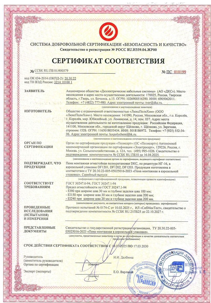 Пена однокомпонентная огнезащитная. Пена однокомпонентная огнезащитная, предел огнестойкости 150 мин, температура монтажа от +5 до + 40°С, цвет розовый, глубина заделки 200 мм при ширине зазора 30 мм, конечный выход одного баллона порядка 25 л.