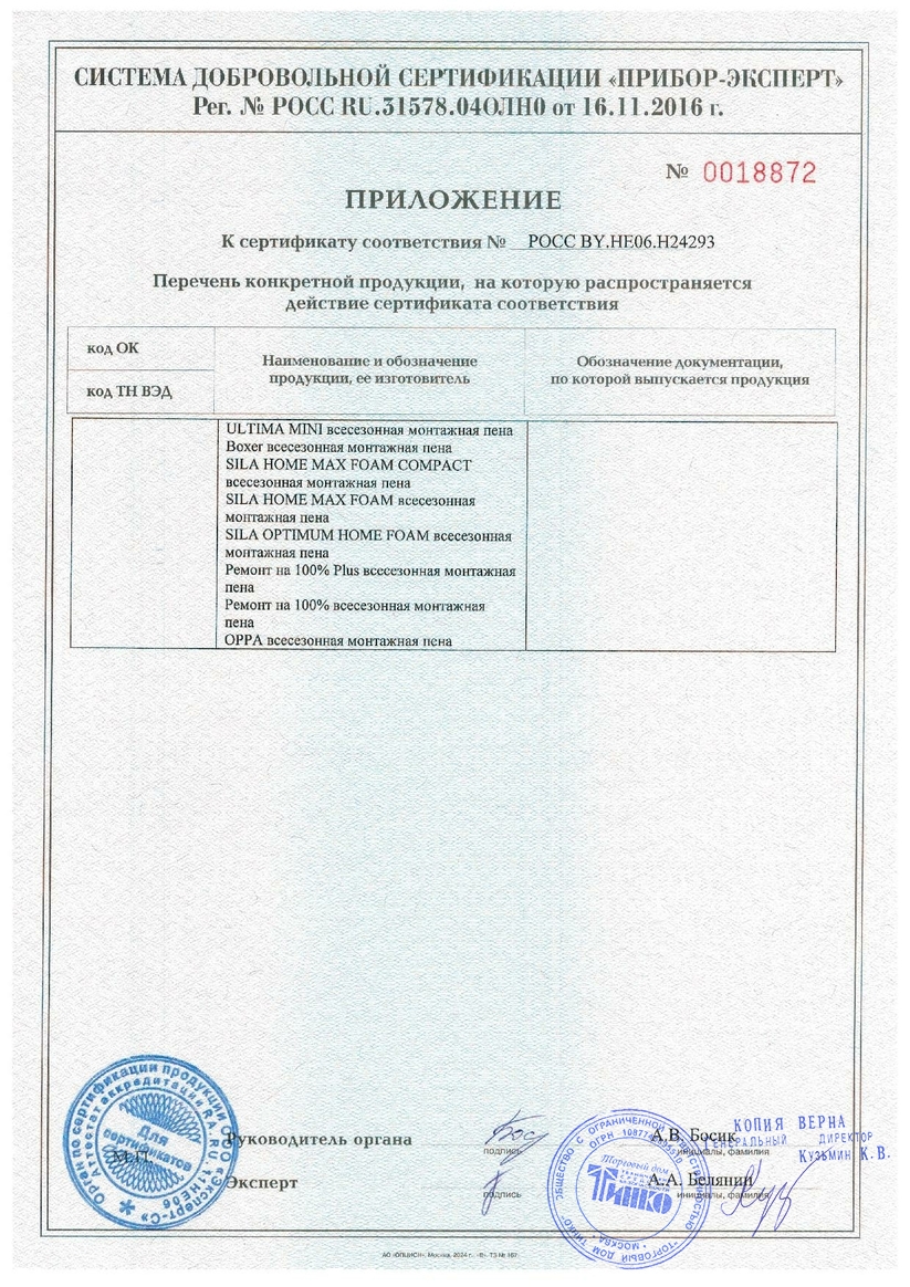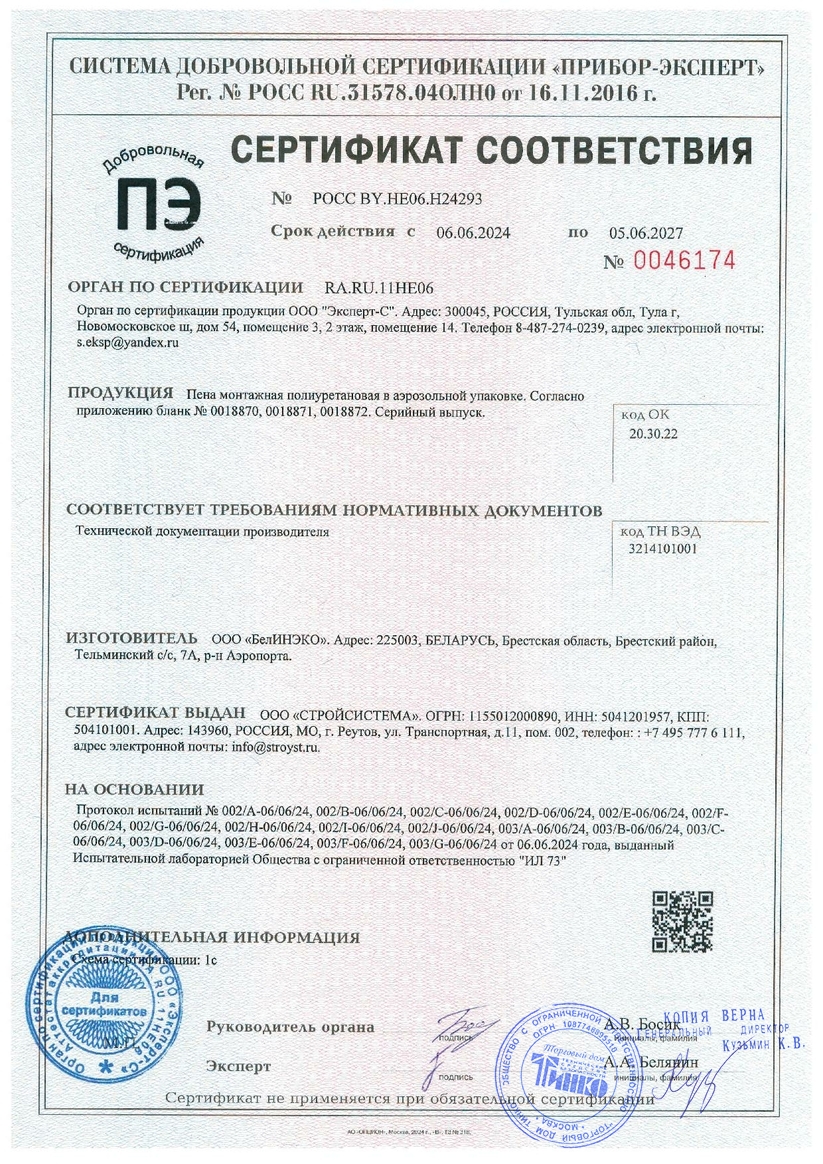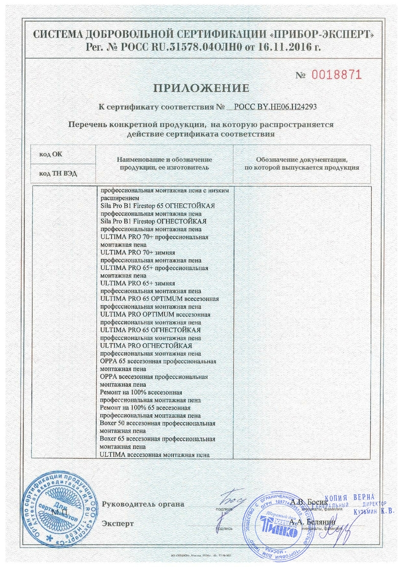 - группа воспламеняемости В1;- класс горючести Г1 по ГОСТ 30244-94;- отличная адгезия;- быстрая полимеризация;- плотная структура пены после полимеризации;- экологичный состав.