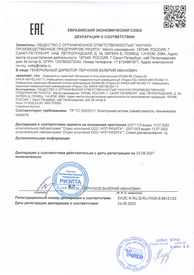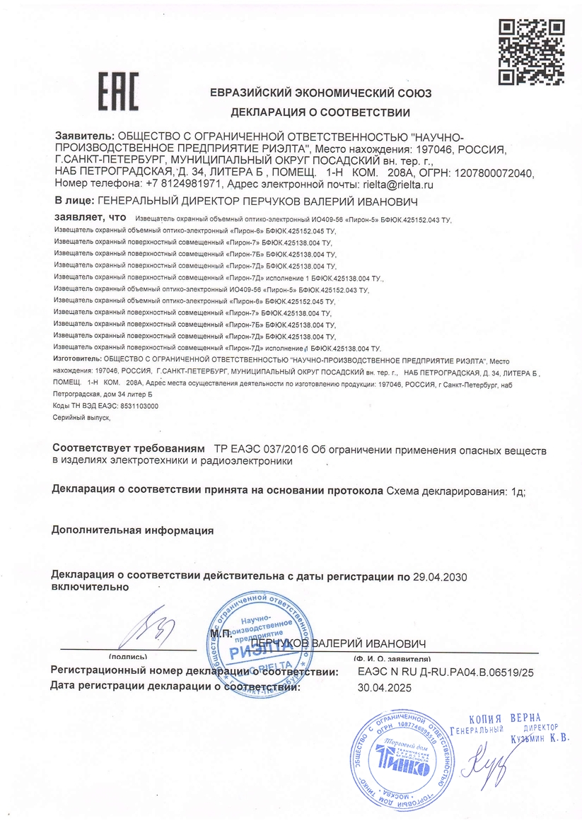 Извещатель охранный поверхностный совмещенный «Пирон-7Д» исполнение 1 предназначен для использования в составе систем охранной сигнализации.Извещатель совмещает в себе два независимых канала обнаружения:- пассивный звуковой акустический канал;- пассивный оптико-электронный, инфракрасный канал.Акустический канал предназначен для обнаружения разрушения строительных конструкций, выполненных с использованием листовых стекол, а также стеклоблоков и стеклопакетов.Инфракрасный канал предназначен для обнаружения проникновения в охраняемое пространство закрытого помещения.