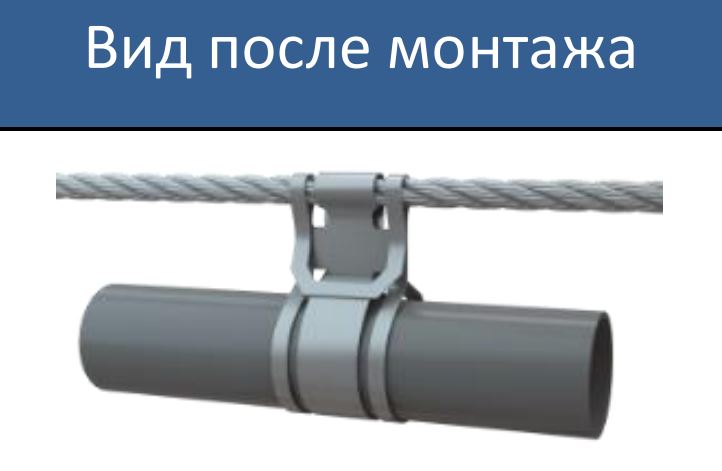 Подвес монтажный огнестойкий универсальный трубный (ПМОУ-Т) предназначен для крепления к тросу трубных кабеленесущих систем диаметром до 26 мм включительно. Подвесы изготавливаются из оцинкованной стали.