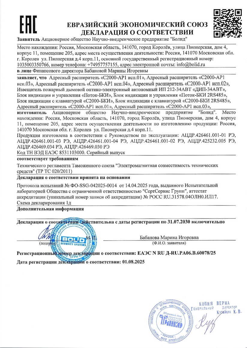Блок индикации и управления "Поток-БКИ" предназначен для работы в составе систем водяного и пенного пожаротушения в ИСО «Орион» совместно с прибором пожарным управления автоматическими средствами водяного пожаротушения«Поток-3Н» версии 1.04 и выше под управлением сетевого контроллера (пульта «С2000М» версии 2.03 и выше либо АРМ «Орион Про» 1.12).