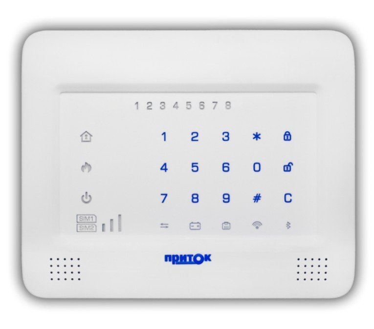 Сенсорная клавиатура. Сенсорная клавиатура для работы с приборами Приток-А-КОП на 8 ШС; встроенный считыватель NFC; до 64 идентификаторов записываемых в клавиатуру, RS-485, TouchMemory, miniUSB; U-пит.10.2...14.5 В, I-потр.150 мА; t-раб.-10...+50°С, 197х162х38 мм