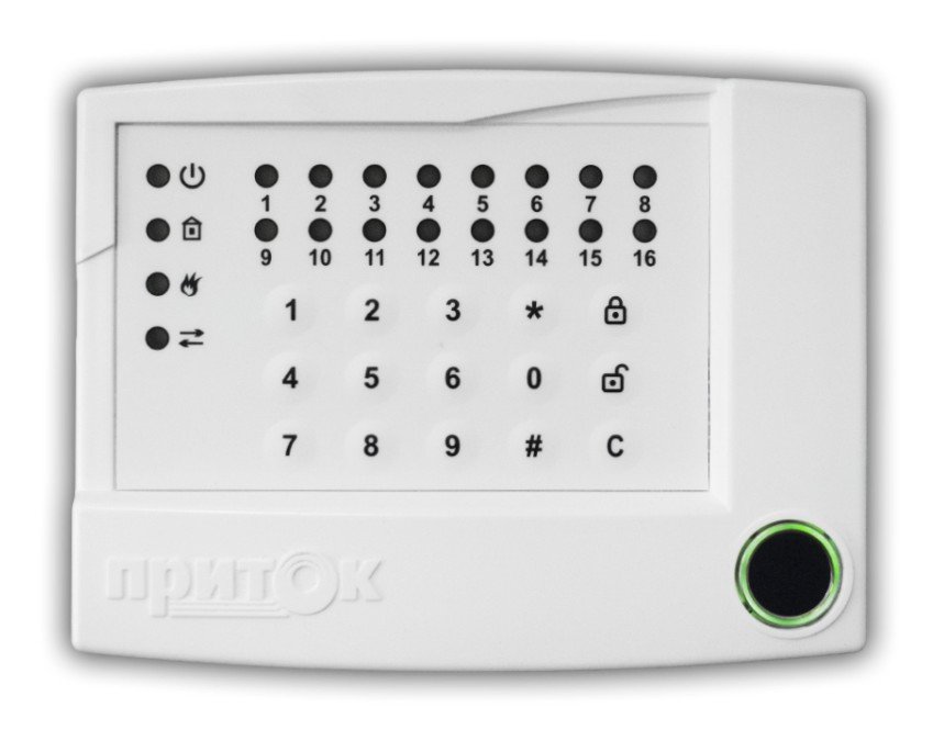 Мембранная клавиатура для работы с приборами Приток-А-КОП. Выносной пульт с индикацией для управления и отображения состояния до 16-шлейфов приборов серии Приток-А-КОП (интерфейс RS-485, до 1000 м), встроенный считыватель NFC и считыватель отпечатков пальцев; U-пит. 10.2... 14.5 В, I-потр. ≤200 мА, световая и звуковая индикация; t-раб. -10...+45°C, габ.размеры 148х112х38 мм