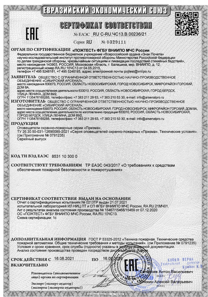 Световой оповещатель "Призма-100" предназначен для использования в составе систем охранно-пожарной сигнализации для выдачи световых сигналов.