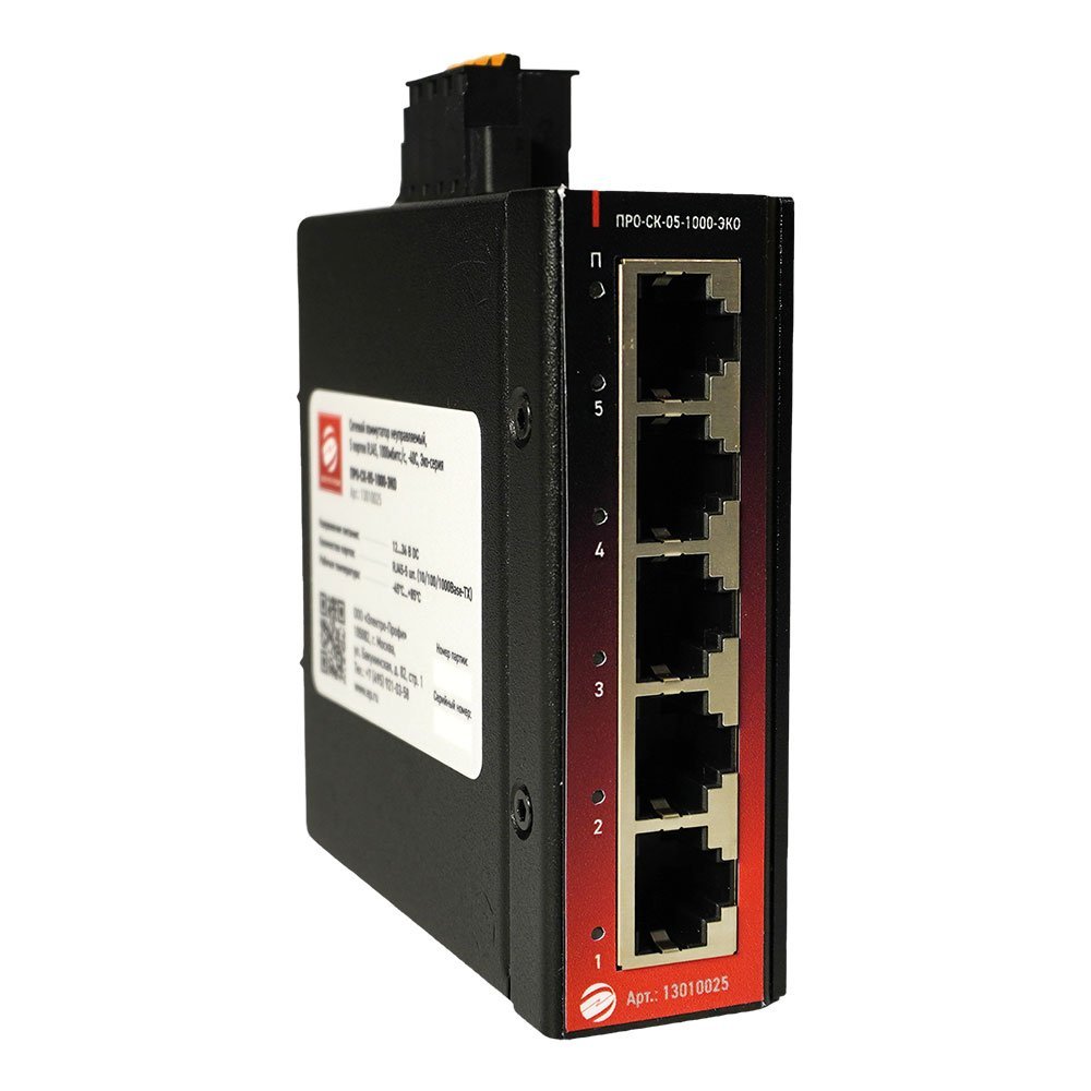 Сетевой коммутатор неуправляемый. Промышленный коммутатор сетевой 5-ти портовый гигабитный неуправляемый; 5xRJ-45 10/100/1000 Мбит/с; топология: звезда, шина, дерево; крепление на DIN-рейку; DC 12-36 В, 4 Вт, 0.5 А; -40... +75°C; 30х85х85 мм.