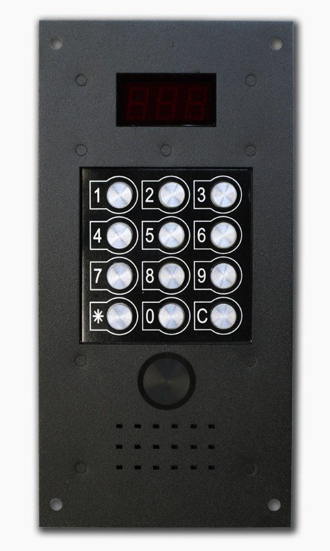 Блок вызова домофона. Многоабонентский аудио блок вызова с цифровой адресацией, до 255 абонентов (999 при работе с БКЗ-3А). Вводимые номера: от 1 до 999. Работа с идентификаторами EM-Marine. Функции *АНТИКЛОН* (запрет клонированных карт и брелоков на базе заготовок Temic (чипы Т5557 \ Т5567 \ АТА5577) и заготовок EM-Marine (чипы ЕМ4205 \ ЕМ4305) и их аналогов.) и *АВТОСБОР* (автом. добавл. ключа в память в процессе работы), память ключей: 2044 (4092 или 8188 при замене микросхемы памяти). Постоянная светодиодная подсветка клавиатуры. Встроенная плата снятия остаточной намагниченности. U-пит.пост. 15 В, I-потр. 0,3 А (без учёта эл.магн. замка). t-раб. -30…+40°С, габ.размеры 220х110х32 мм. Цвет корпуса: чёрный (порошковое покрытие).