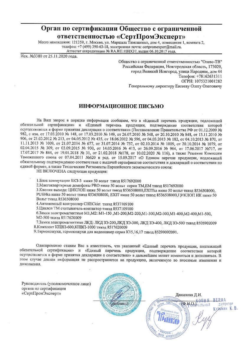 Домофон с цифровой адресацией PROV-EM предназначен для организации доступа в подъезды жилых многоквартирных зданий. Обеспечивает доступ по электронным идентификаторам (ключам или брелокам) по протоколу EM-Marine. Применяется как для нового монтажа, так и для ремонтной замены домофонов МАРШАЛ и других, имеющих аналогичные размеры.Имеет цифровую адресацию абонентских устройств, до 255 абонентов; индикация трёхразрядная, семисегментная; конструктивно лицевая панель стальная, общей толщиной 5.0 мм; клавиатура кнопочная двухпружинная, с упорной стальной пластиной; подсветка наборного поля клавиатуры; встроенные электрические цепи управления и размагничивания электромагнитного замка.Домофон PROV работает с цифровыми абонентскими устройствами LC-8d, LM-8d, TS-AD Digital, ТКП-12D и их аналогами. Максимальное количество АУ - 255. Вводимые номера 1…999.Предустановленная энергонезависимая память обеспечивает работу с 2044 ключами. Электромагнитный замок запитывается и управляется от домофона. Используемые в домофоне электрические цепи снятия остаточной намагниченности с якоря электромагнитного замка позволяют устанавливать такие замки в минимальной комплектации (без плат управления и размагничивания).