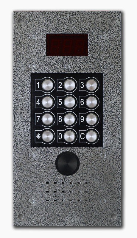 Блок вызова домофона. Многоабонентский аудио блок вызова с цифровой адресацией, до 255 абонентов (999 при работе с БКЗ-3А). Вводимые номера: от 1 до 999. Работа с идентификаторами EM-Marine, функции *АНТИКЛОН* и *АВТОСБОР*, память ключей: 2044 (4092 или 8188 при замене микросхемы памяти). Постоянная светодиодная подсветка клавиатуры. Встроенная плата снятия остаточной намагниченности. U-пит.пост. 15 В, I-потр. 0,3 А (без учёта эл.магн. замка). t-раб. -30…+40°С, габ.размеры 220х110х32 мм. Цвет корпуса: серебряный антик (порошковое покрытие).