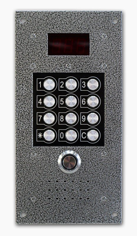 Домофон с цифровой адресацией PROV-TM предназначен для организации доступа в подъезды жилых многоквартирных зданий. Обеспечивает доступ по электронным идентификаторам (ключам или брелокам) по протоколу DS1990A (TM, iButton). Применяется как для нового монтажа, так и для ремонтной замены домофонов МАРШАЛ и других, имеющих аналогичные размеры.Имеет цифровую адресацию абонентских устройств, до 255 абонентов; индикация трёхразрядная, семисегментная; конструктивно лицевая панель стальная, общей толщиной 5.0 мм; клавиатура кнопочная двухпружинная, с упорной стальной пластиной; подсветка наборного поля клавиатуры; встроенные электрические цепи управления и размагничивания электромагнитного замка.Домофон PROV работает с цифровыми абонентскими устройствами LC-8d, LM-8d, TS-AD Digital, ТКП-12D и их аналогами. Максимальное количество АУ - 255. Вводимые номера 1…999.Предустановленная энергонезависимая память обеспечивает работу с 2044 ключами. Электромагнитный замок запитывается и управляется от домофона. Используемые в домофоне электрические цепи снятия остаточной намагниченности с якоря электромагнитного замка позволяют устанавливать такие замки в минимальной комплектации (без плат управления и размагничивания).