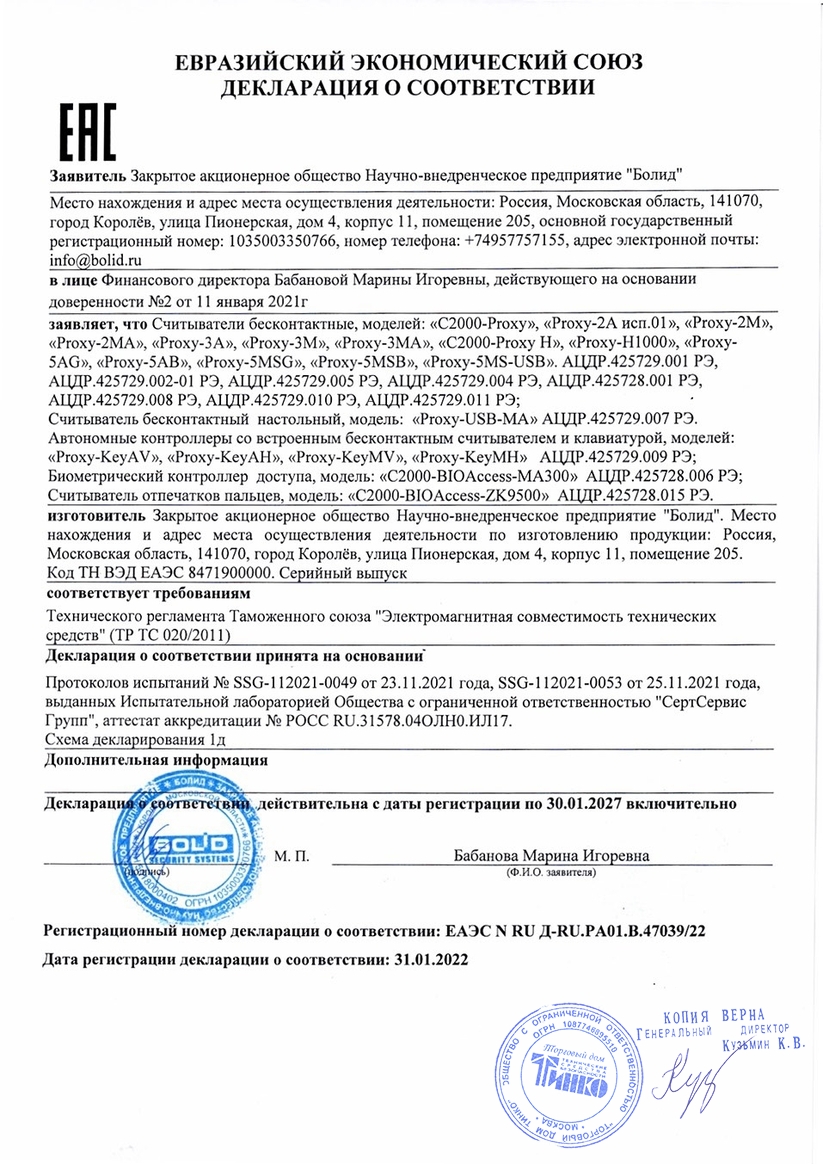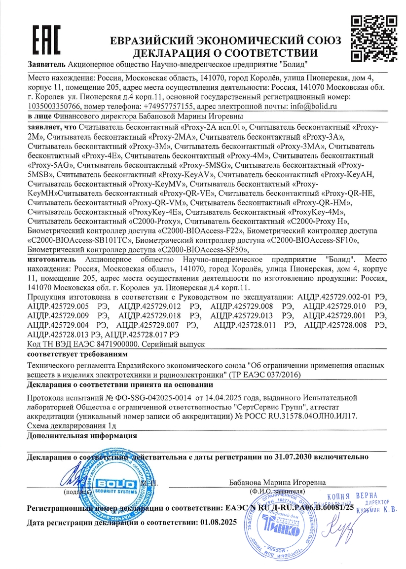 Считыватель бесконтактный "Proxy-2A" применяется в системах охраны и в системах контроля и управлениядоступом и предназначен для считывания кода идентификационных карточек и передачи его на приборы приемно-контрольные или контроллеры СКД, поддерживающие любой из следующих входных форматов данных:– Dallas Touch Memory;– Wiegand 26;– Wiegand 44;– считывателя магнитных карт;– RS-232.