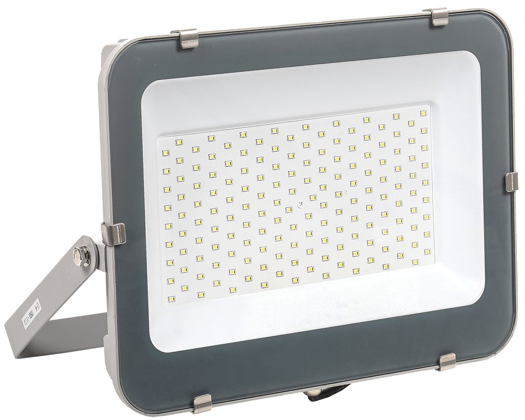 Прожектор светодиодный. Прожектор светодиодный 150 Вт, световой поток 12700 лм; цветовая температура 6500 К; угол светового пучка 120°, U-пит. 180…240 В/50(60) Гц, IP65, t-раб. -40…+50°С, габ.размеры 340х264х51 мм, алюминиевый корпус, серый.