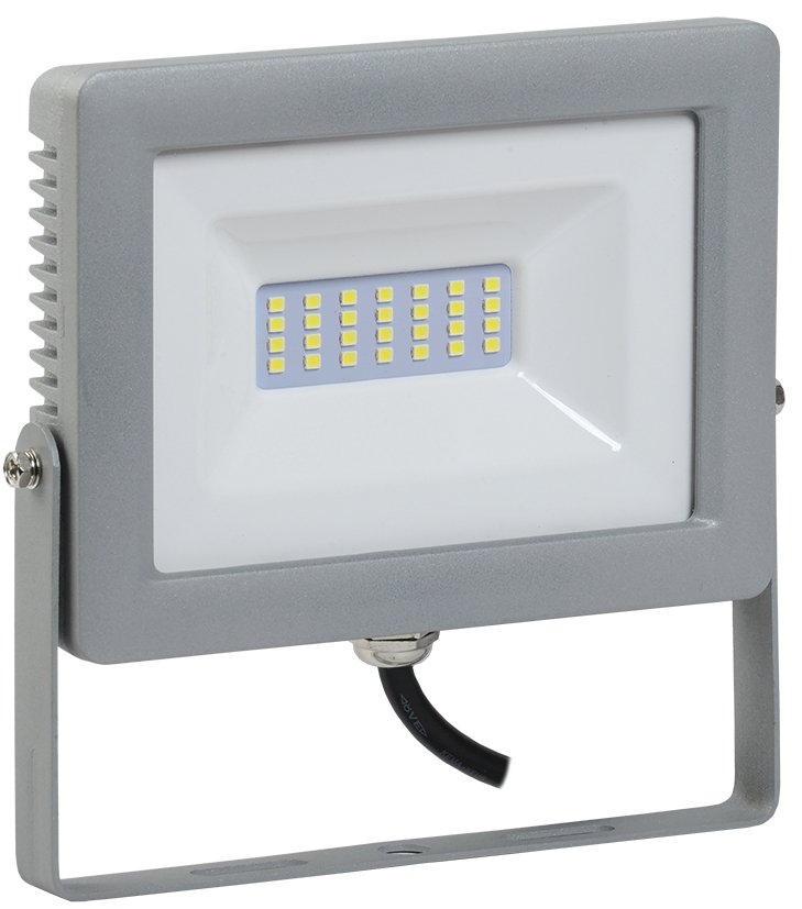 Прожектор светодиодный. Прожектор светодиодный 30 Вт, световой поток 2400 лм; цветовая температура 6500 К; угол светового пучка 120°, U-пит. 180…240 В/50(60) Гц, IP65, t-раб. -40…+50°С, габ.размеры 155х115х30 мм, алюминиевый корпус, серый.