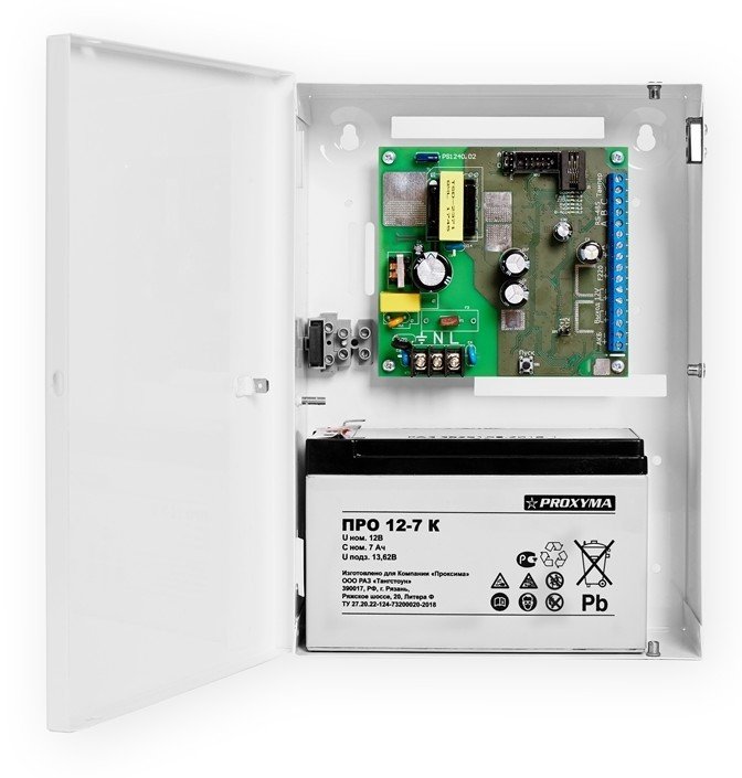 - Импульсный резервированный источник вторичного электропитания PS-1240 предназначен для обеспечения круглосуточным бесперебойным питанием систем охранно-пожарной сигнализации и других потребителей с номинальным напряжением питания 12В;- Источник подключается к платам серии Sпо шине RS-485 для обмена информацией и настройки параметров;- Источник обеспечивает питание нагрузки постоянным стабилизированным напряжением и заряд аккумуляторной батареи (АКБ) при наличии сетевого напряжения и автоматический переход на питание нагрузки от АКБ при отключении сетевого напряжения;- Источник защищает АКБ от глубокого разряда и переполюсовки, имеет электронную защиту от перегрузки, перегрева и замыкания в нагрузке, оснащен гальванически развязанными выходами: «F220» – питание от сети, «FA» - неисправность.- Подключение сетевого напряжения, АКБ, нагрузки, «F220» и «FA» производится при помощи клеммных соединителей;- Источник выполнен в корпусе - бокс монтажный металлический.